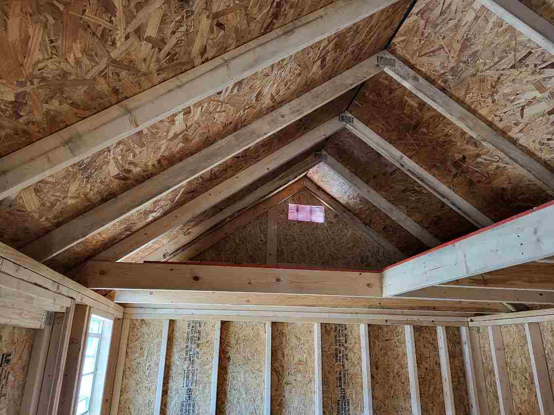 The roof is pitched somewhat steeper than our utility and garage style buildings, which provides room for overhead storage areas with easy access.
