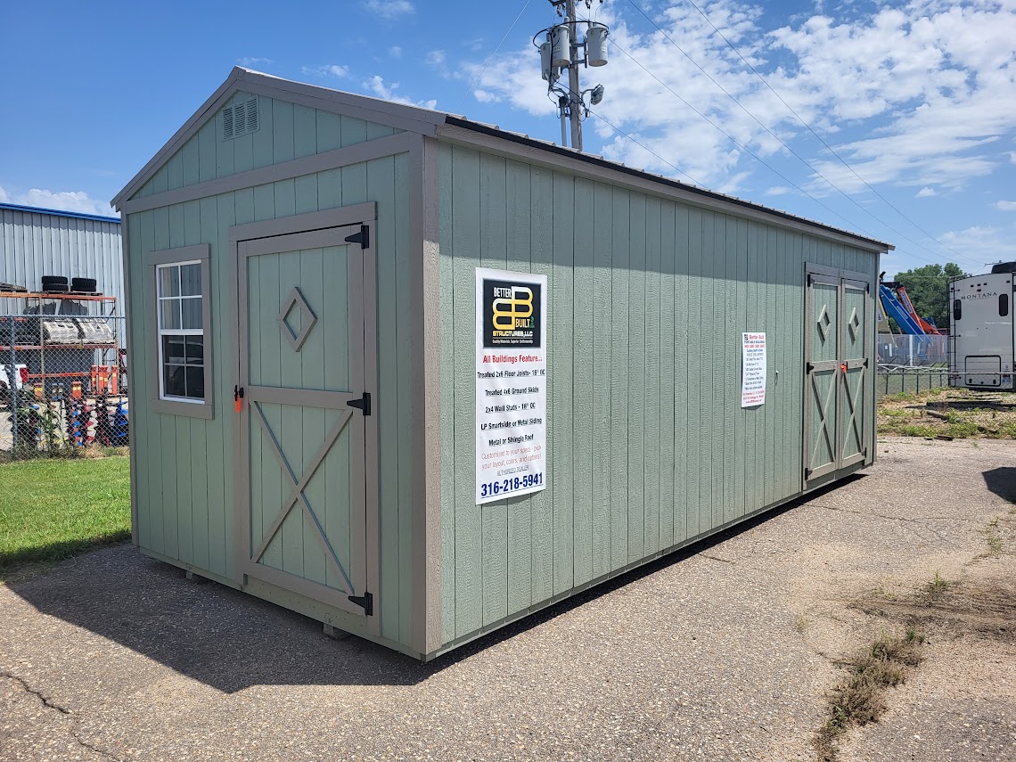 Built upon sturdy 4x6 pressure treated skids with 2x6 treated floor joists, the Better uilt Utility building comes standard with LP Pro Struct FLooring©, and is built to provide many years of trouble free service. A 40 year Panel-Loc Plus™ metal roof, along with LP Smartside© siding provide the ultimate in exterior protection.